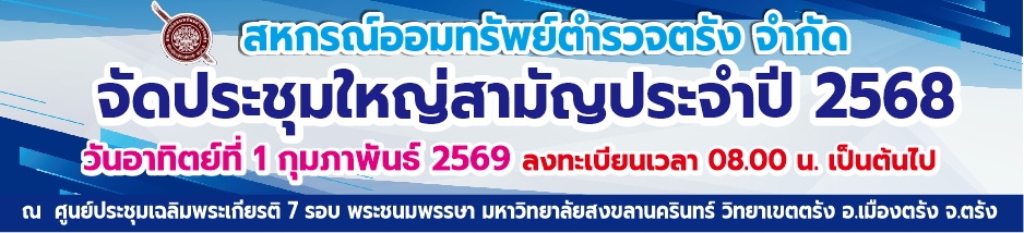 ขอเชิญประชุมใหญ่สามัญประจำปี 2568 ในวันที่ 1 กุมภาพันธ์ 2569